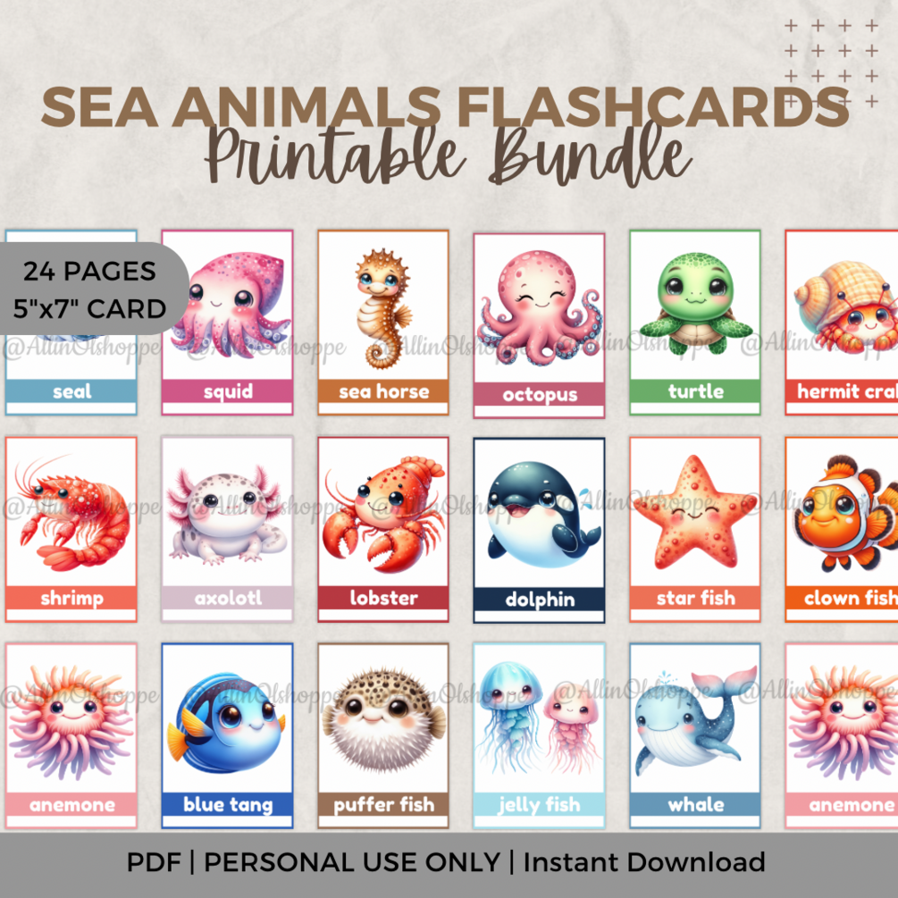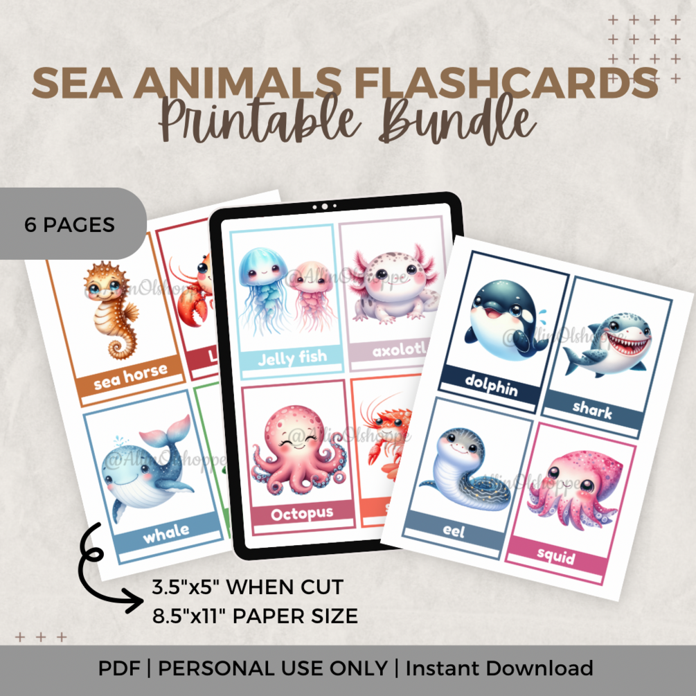 You'll get 1 PDF file containing the access link of Sea Animals Flashcards Activity for Kids.